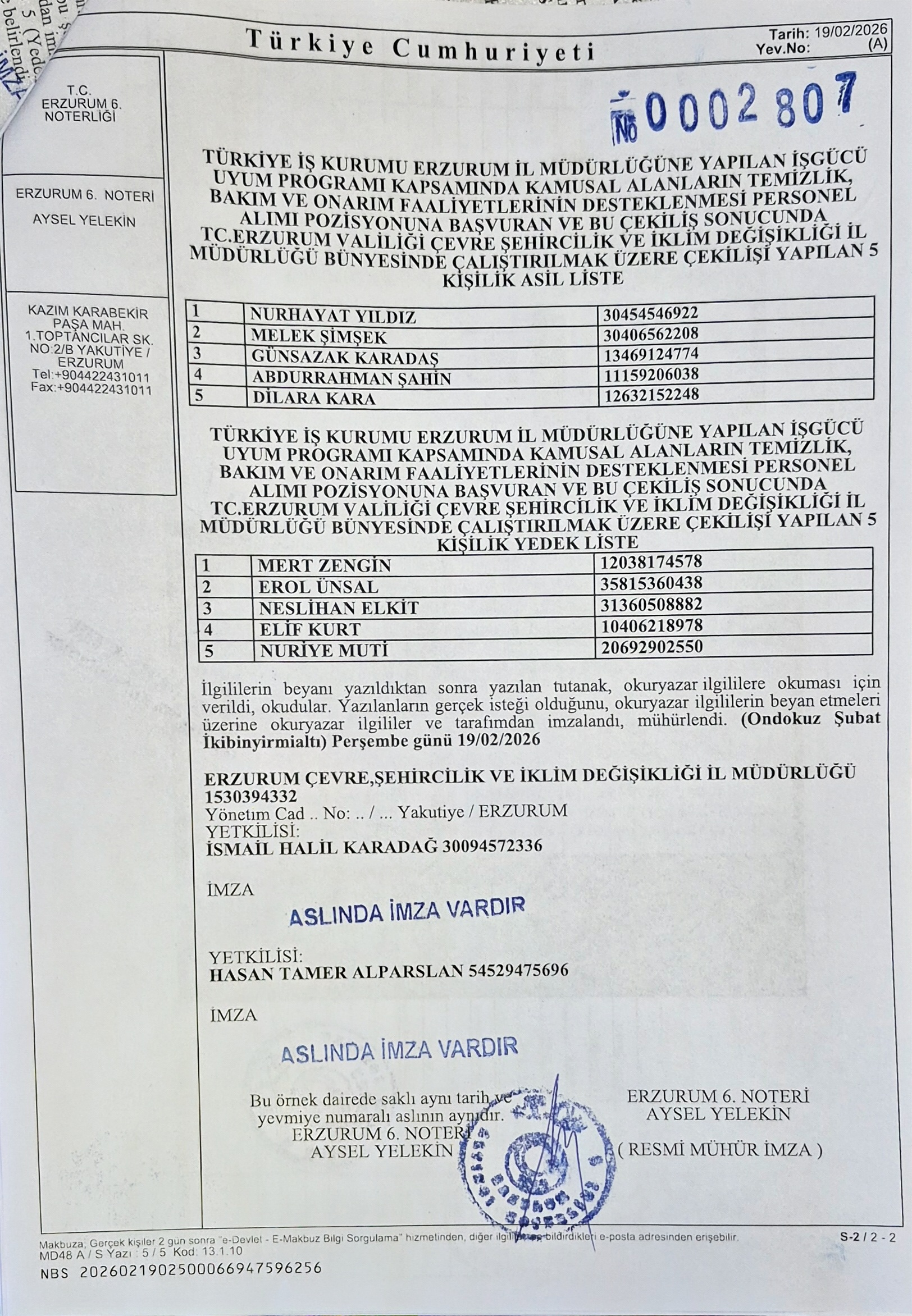 İşgücü Uyum Programı Kapsamında Personel Kura Sonucu